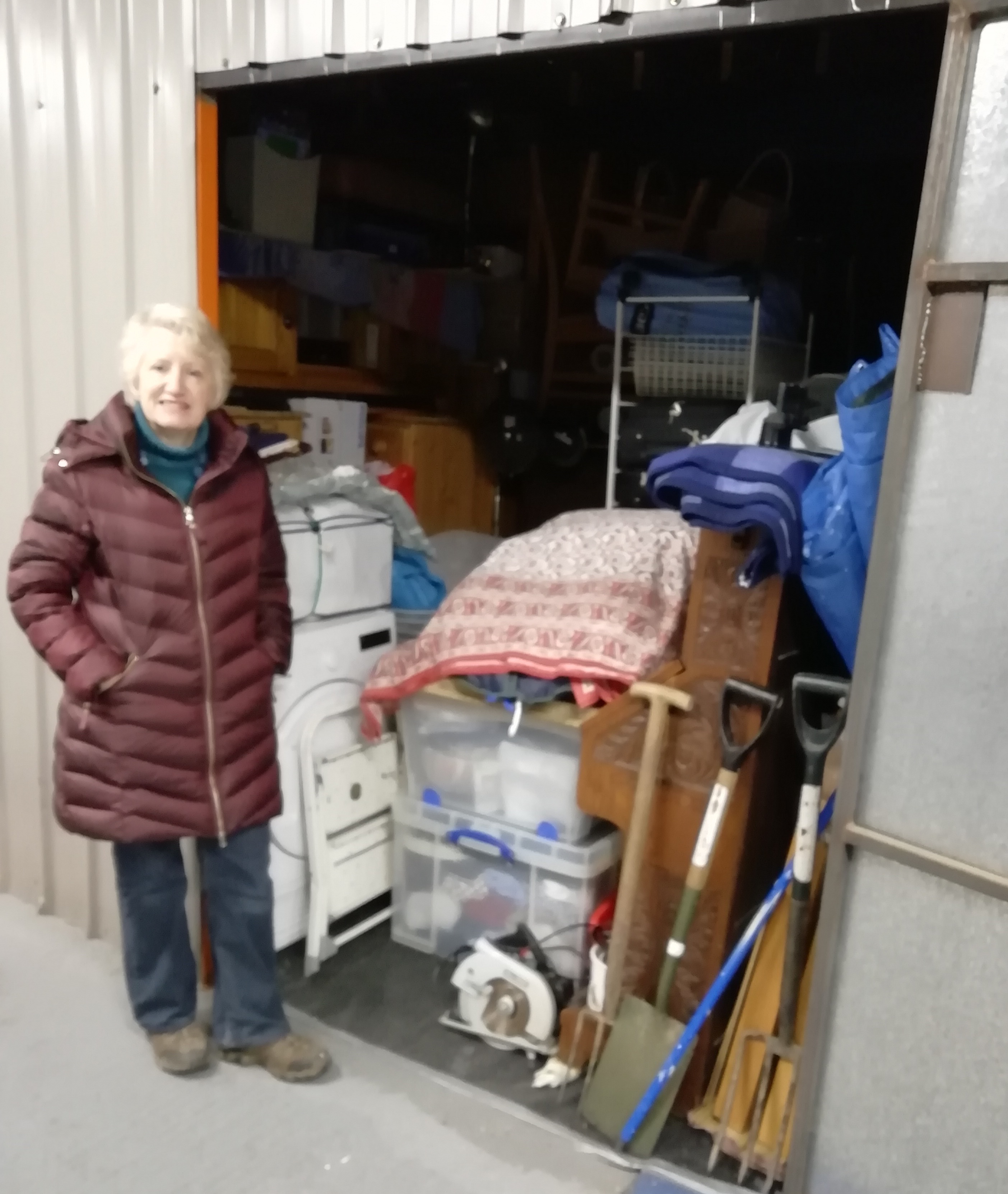 Our storage unit with the desk unit from the study and some of our boxes.
