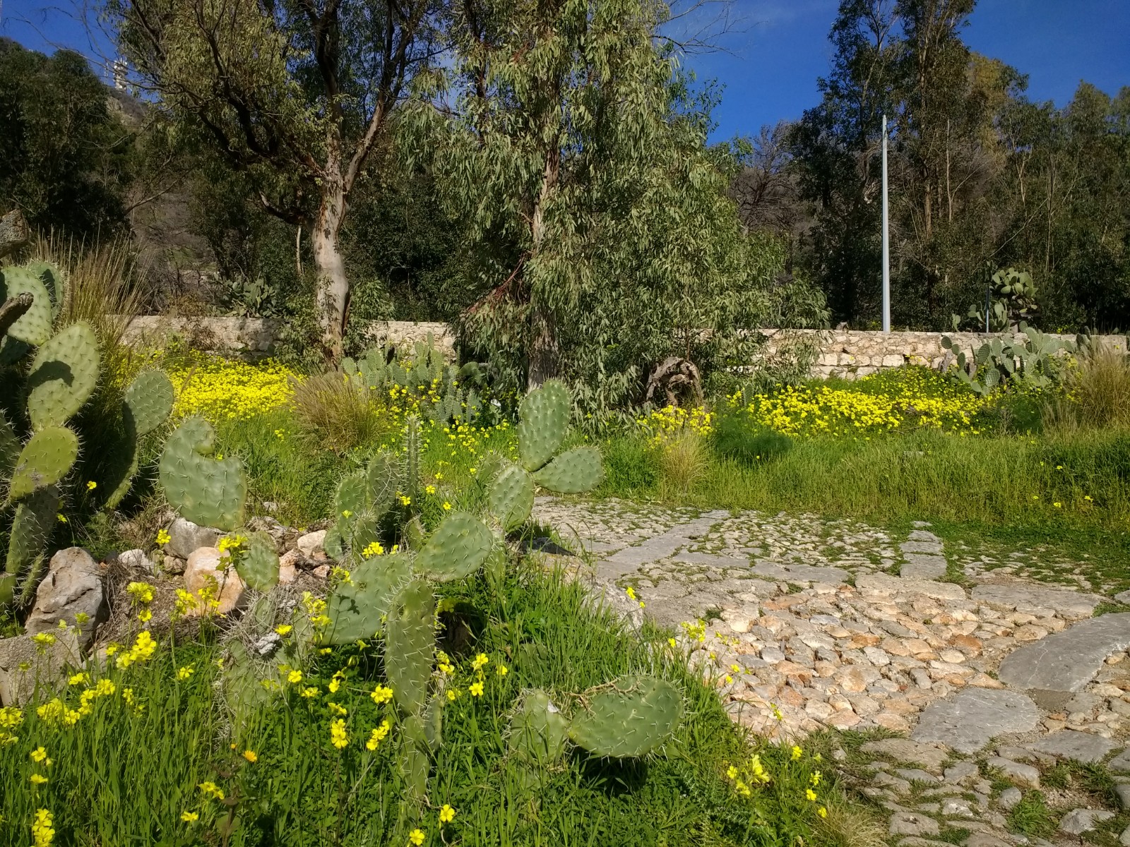 The sun has shone on us the last two days. Yesterday we walked up Monte Pellegrino in our T-shirts while the locals, still wrapped up in hats and coats, watched us incredulously. Near the top of the hill is a shrine to Santa Rosalia, patron saint of Palermo. The story goes that she lived alone in a cave on Mount Pellegrino to better worship God. During the plague of 1624, almost five centuries after her death, she appeared to some of the populous telling them to collect her bones and carry them round the city. This was done, and the plague left Palermo. Since this time she has remained a much-loved and popular saint despite a British geologist in the nineteenth century declaring the bones to be those of a goat. There is a festival in her honour every July, and in September there is a tradition of walking up to her shrine, some people barefoot and others on their knees (this is a cobbled path).