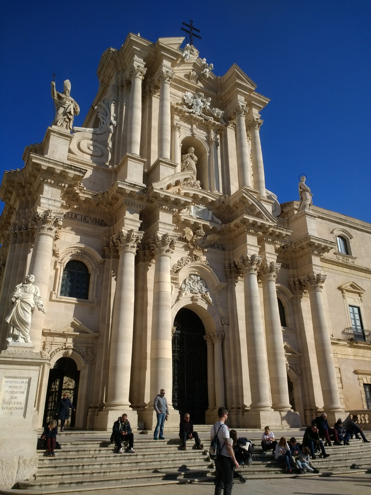 Ortigia is full of narrow medieval streets, ideal for wandering through. This we did and came to Siracusa Cathedral, built around a fifth century BC temple to Athena. When a Christian place of worship was wanted, the distance between the pillars was filled in.