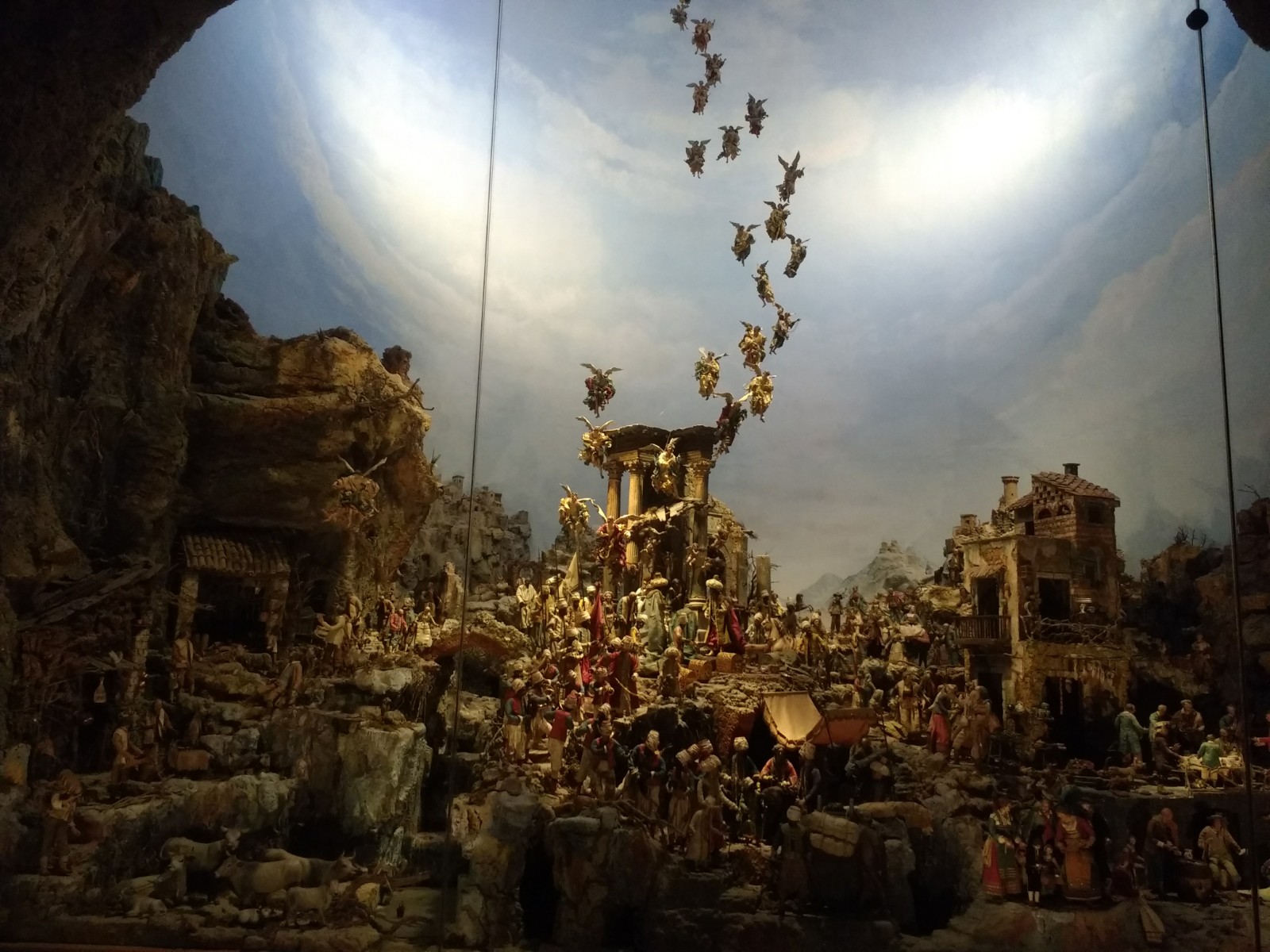 The museum is well-known for its examples of nativity scenes. These are very popular in Naples and can be seen all over the city coming up to Christmas. They are not the simple scenes we may know with Joseph, Mary, baby Jesus, a few shepherds, the three kings and a handful of animals, but include individuals you would find in any settlement such as a blacksmith, a butcher, a shopkeeper and so on. The scene could be set in any period of history and antique nativities provide an insight into fashion, housing etc. Ordinary folk often make their own nativity sets.