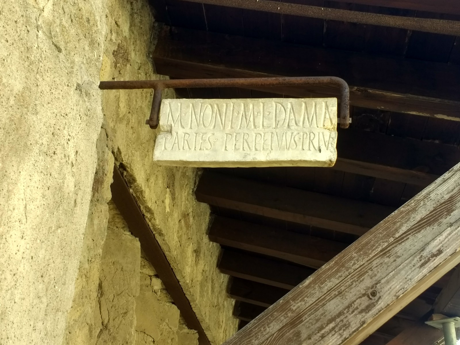 A house sign with the name of the inhabitant. This man was a former slave who became a citizen.