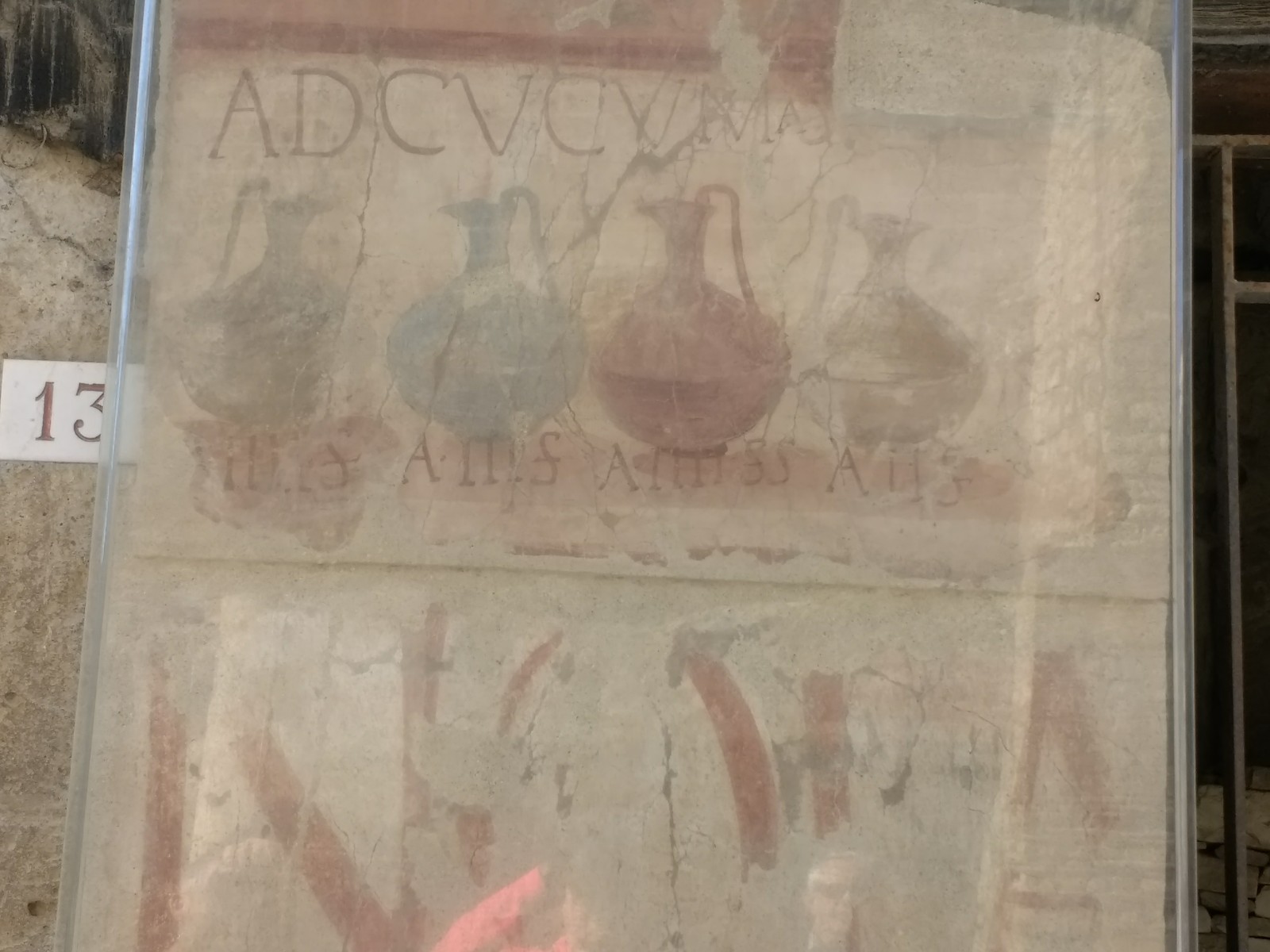 Thermopolium. A place where poor people who had houses with no cooking facilities could come and buy ready-cooked food.Wine menu outside a shop.
