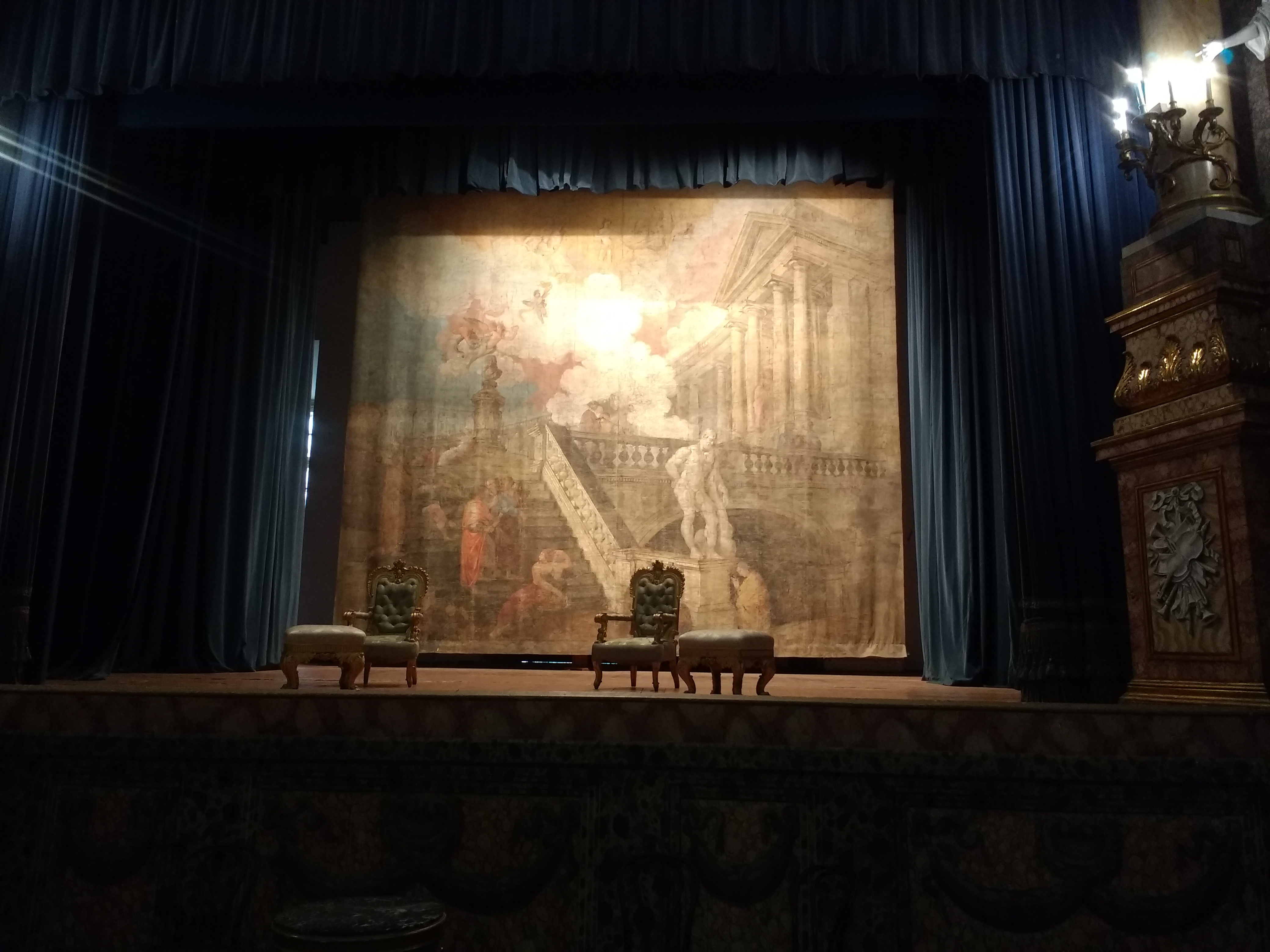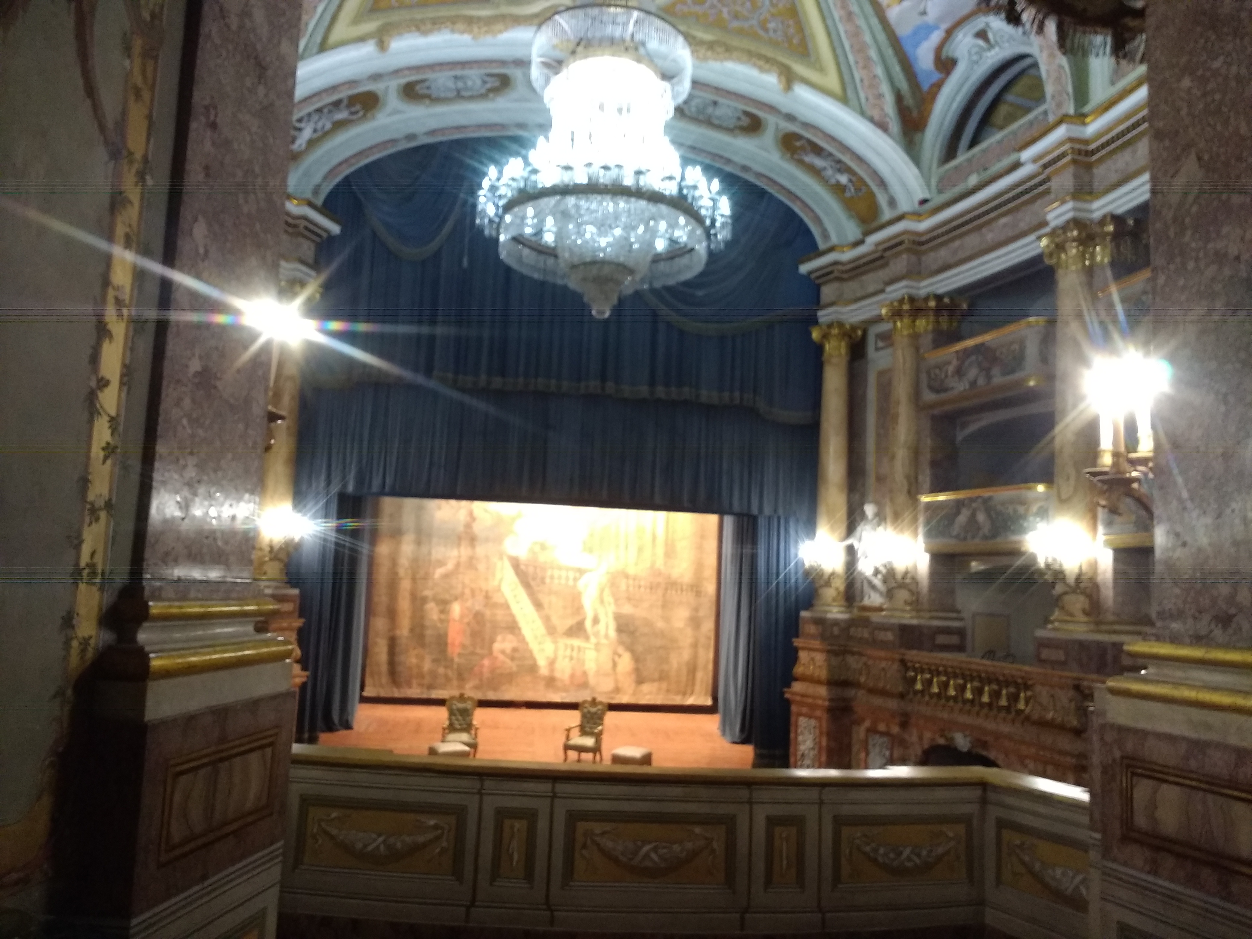 When a theatre was considered for the Royal Palace of Caserta, the designer, Vantitelli, produced a scaled-down copy of Teatro San Carlo.