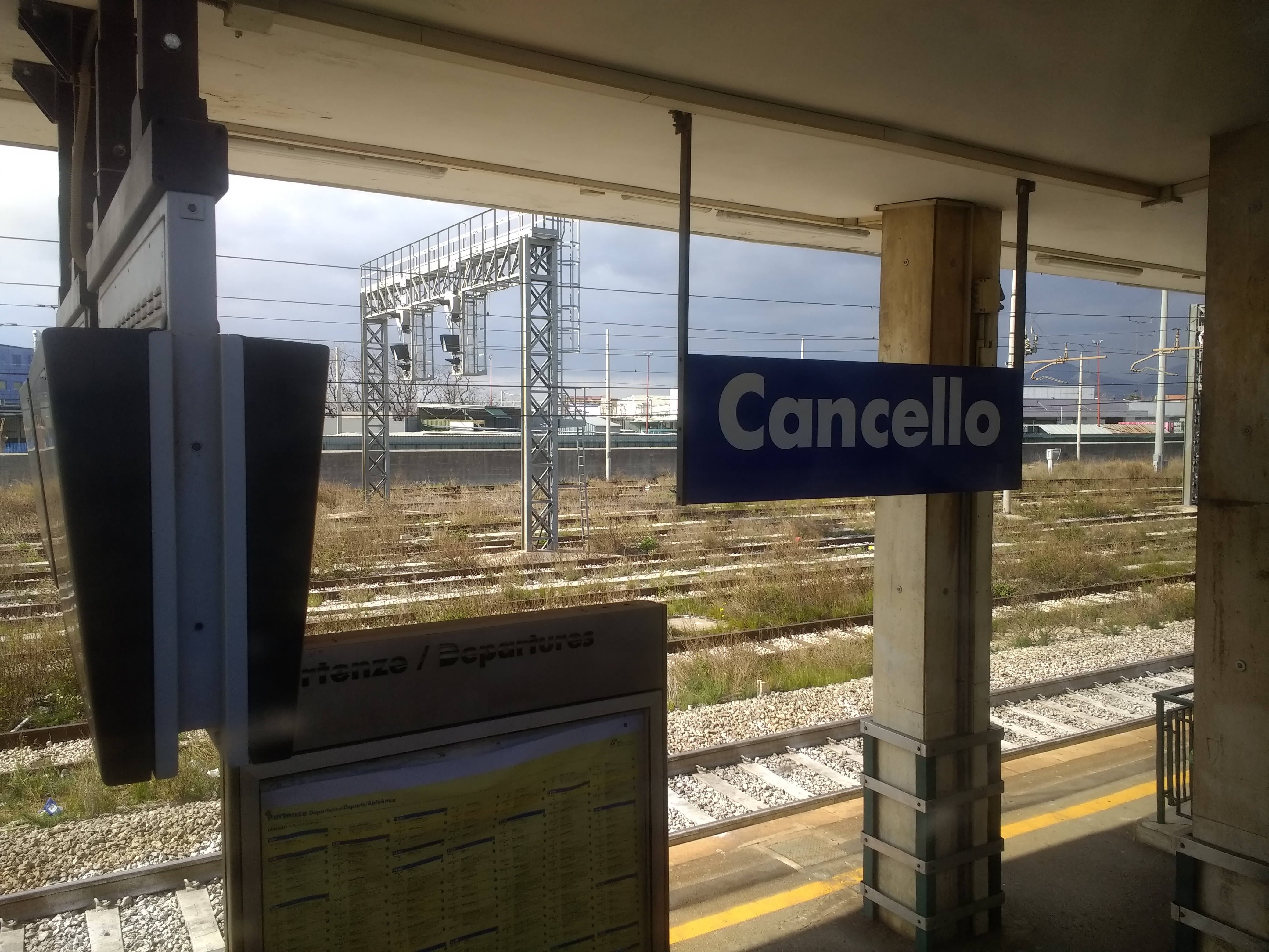 (Now I am home, I have looked up the correct Italian. If the train had been cancelled, I think the word ‘cancellato’ would have been used, and not ‘cancello’).