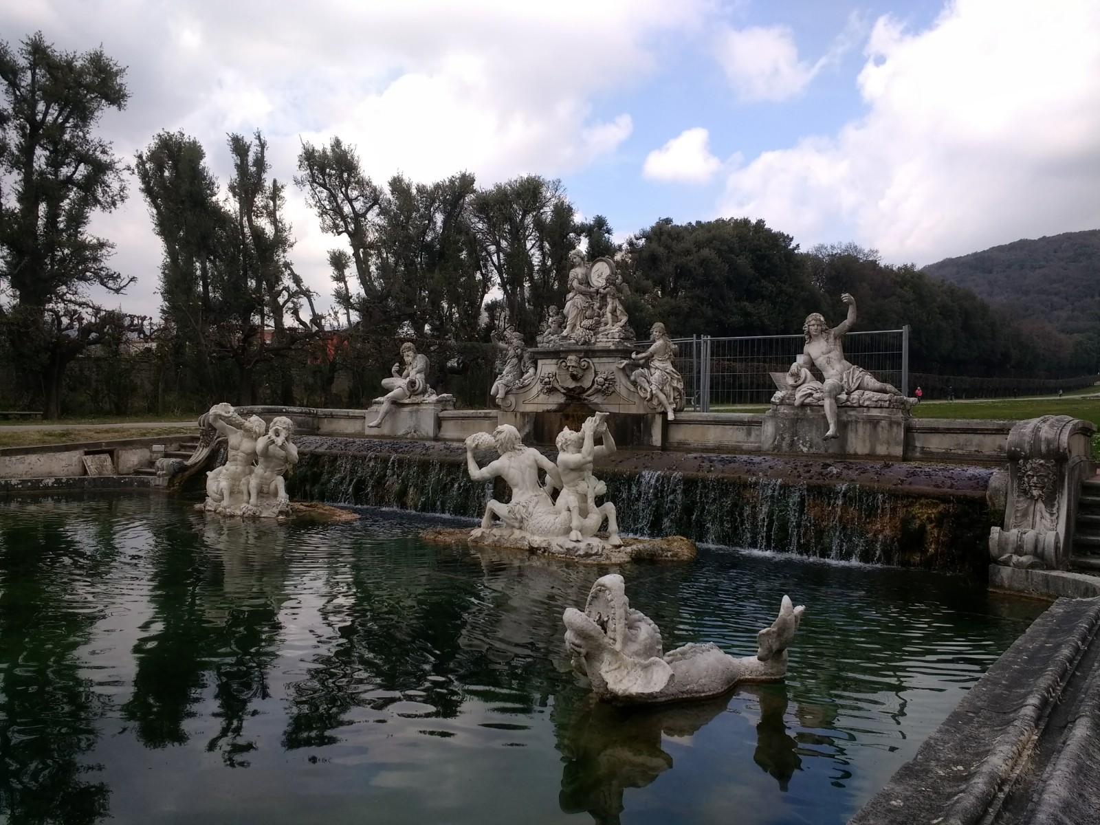 We were glad to be able to see the theatre at Caserta when we visited today, and also pleased that the formal garden was open, the wind having dropped. The English garden though (we are thinking manicured lawn and flowers) was closed for reasons of ‘safety’.