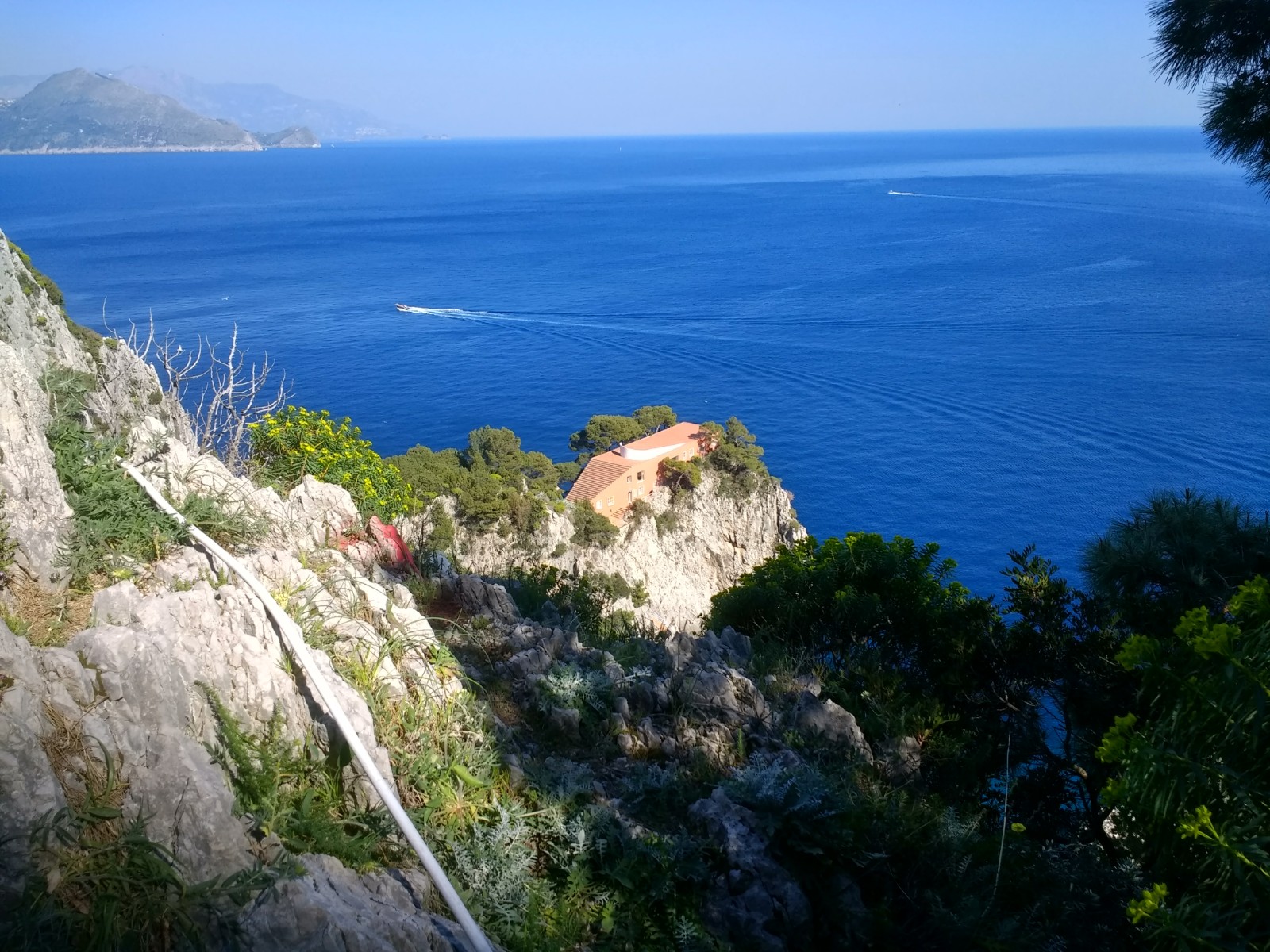 Eventually, we had sight of a very modern-looking house in an isolated position. This was designed by the owner, Curzio Malaparte, in the 1930’s (apparently it is an excellent example of Italian modern and contemporary architecture). A fascist, Malaparte fell out of favour with the Fascist party, and spent time at Villa Malparte under house arrest.