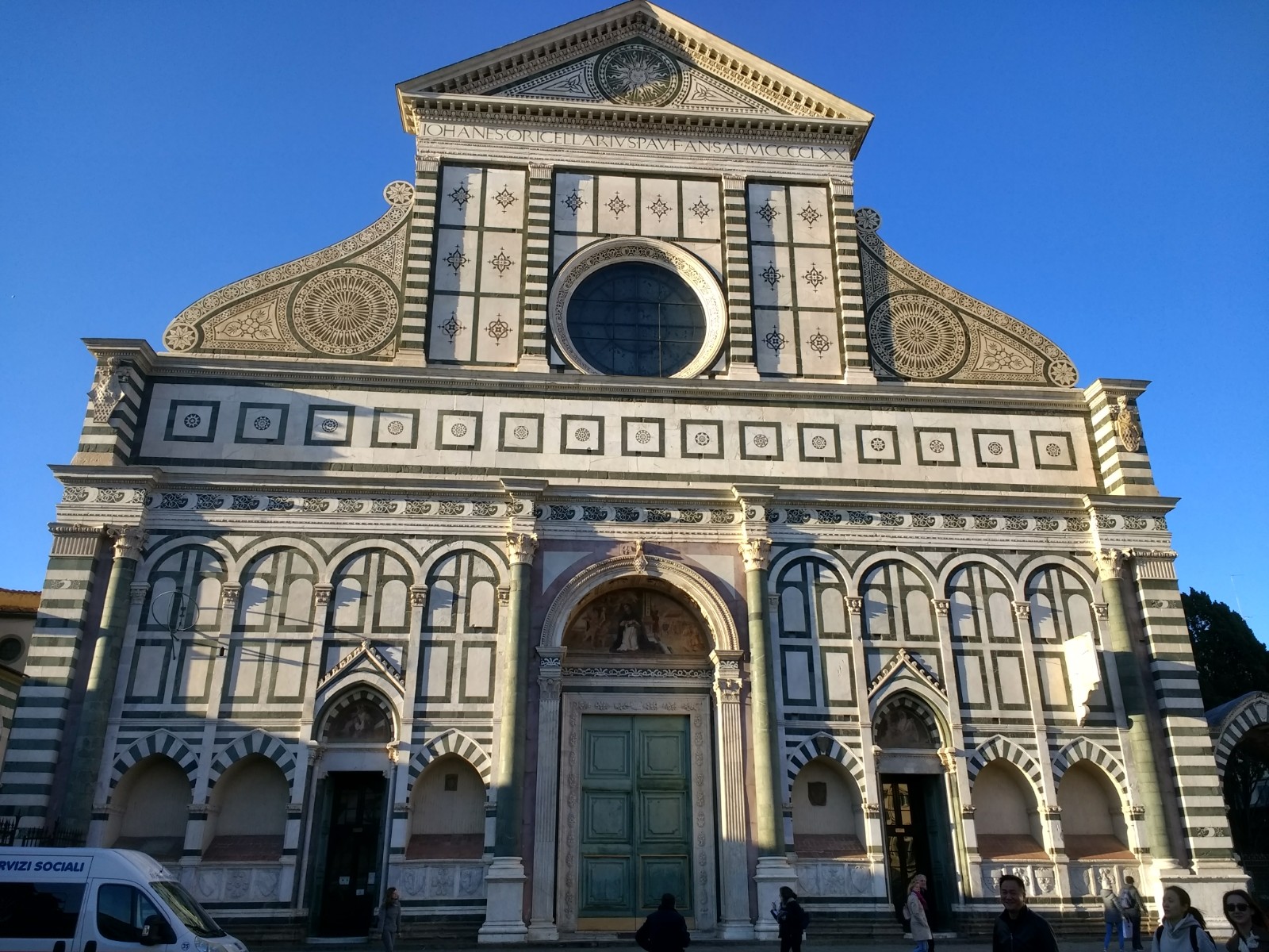 Santa Maria Novella, fifteenth century. Green and white marble facade.