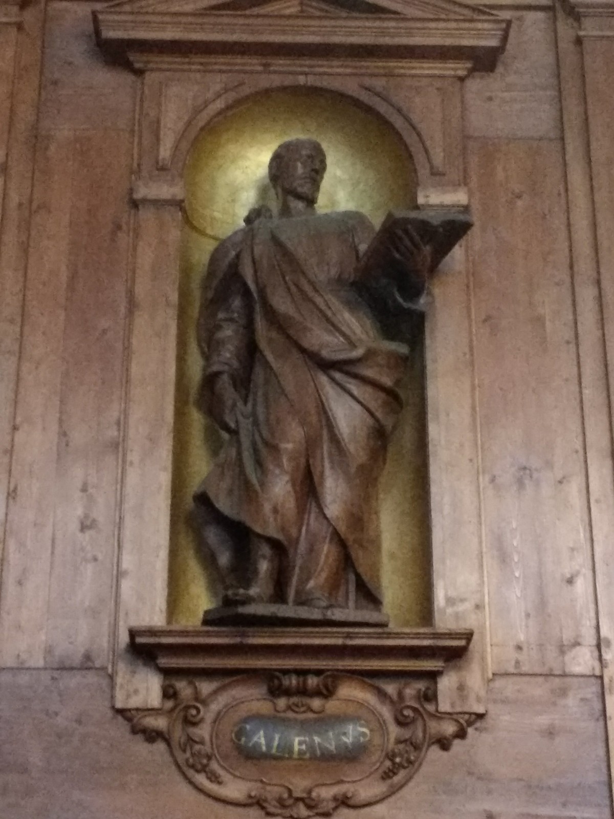 Galen (129-200) ‘The most important physician of antiquity’.Stabat Mater Hall, formerly a lecture hall for law students.This space, now used as a book deposit, was formerly divided into ten student classrooms.