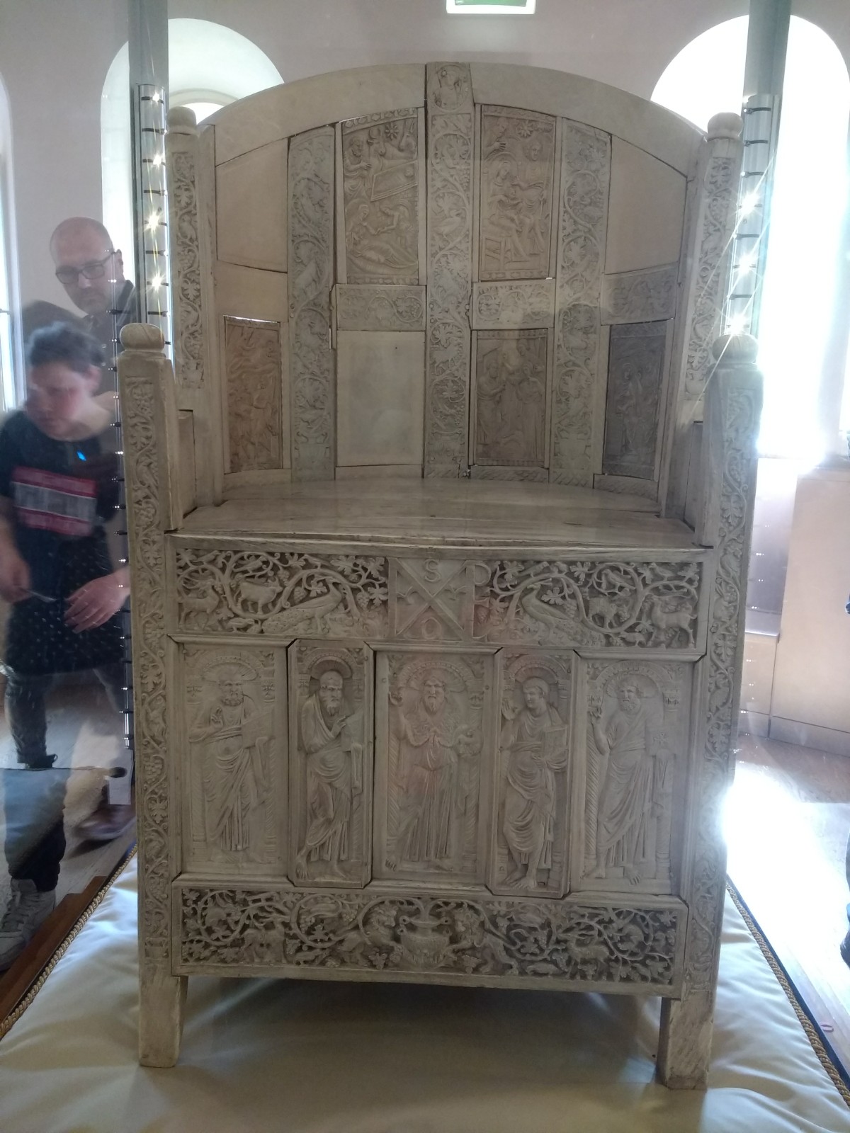 Ceiling, St Martin’s Church. There are those winged creatures again.Apse, St Martin’s ChurchIvory bishop’s throne, fifth century. I find it difficult to marvel at a thing like this, thinking of the poor elephants.Calendar for working out the date for Easter for the years 532-626