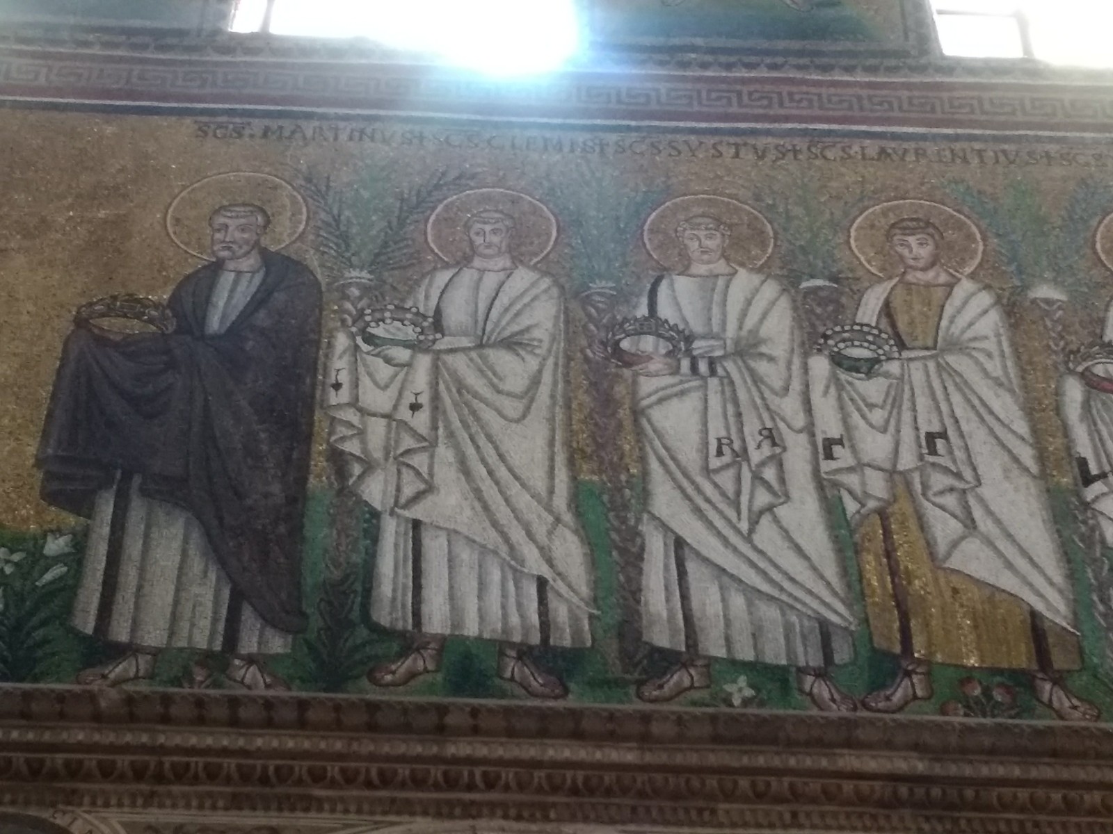 Male saints carrying holy relics, Sant’Apollinare. They are holding the relics in gloved hands, or pieces of cloth, as they shouldn’t be touched with bare skin.