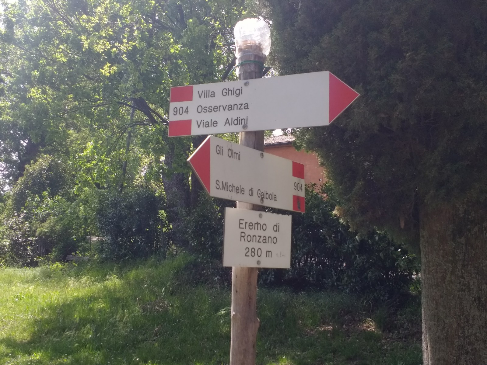 Wishing to stretch our legs in the countryside, instead of on the hard city streets, we followed a marked trail yesterday taking us outside Bologna. The Italian Alpine Club, despite their name, mark, and maintain, walks all over Italy.