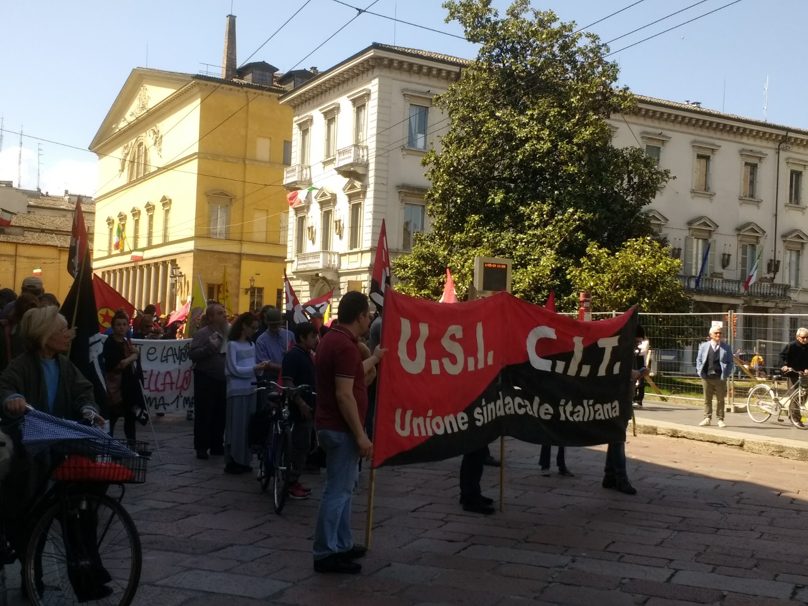 When we arrived at Bologna Station this morning, a large crowd of trade union representatives were gathering in the square outside with their various flags. We saw a corresponding gathering in Parma, but with a far fewer number of attendees.