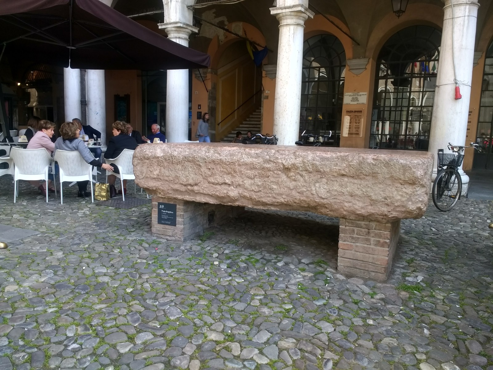 A large marble block in Piazza Grande is thought to have come from a Roman building and to have been used as a stage for speakers in the Middle Ages. A more gruesome use was that of a place of execution, and also as a platform to display corpses for the purposes of identification.