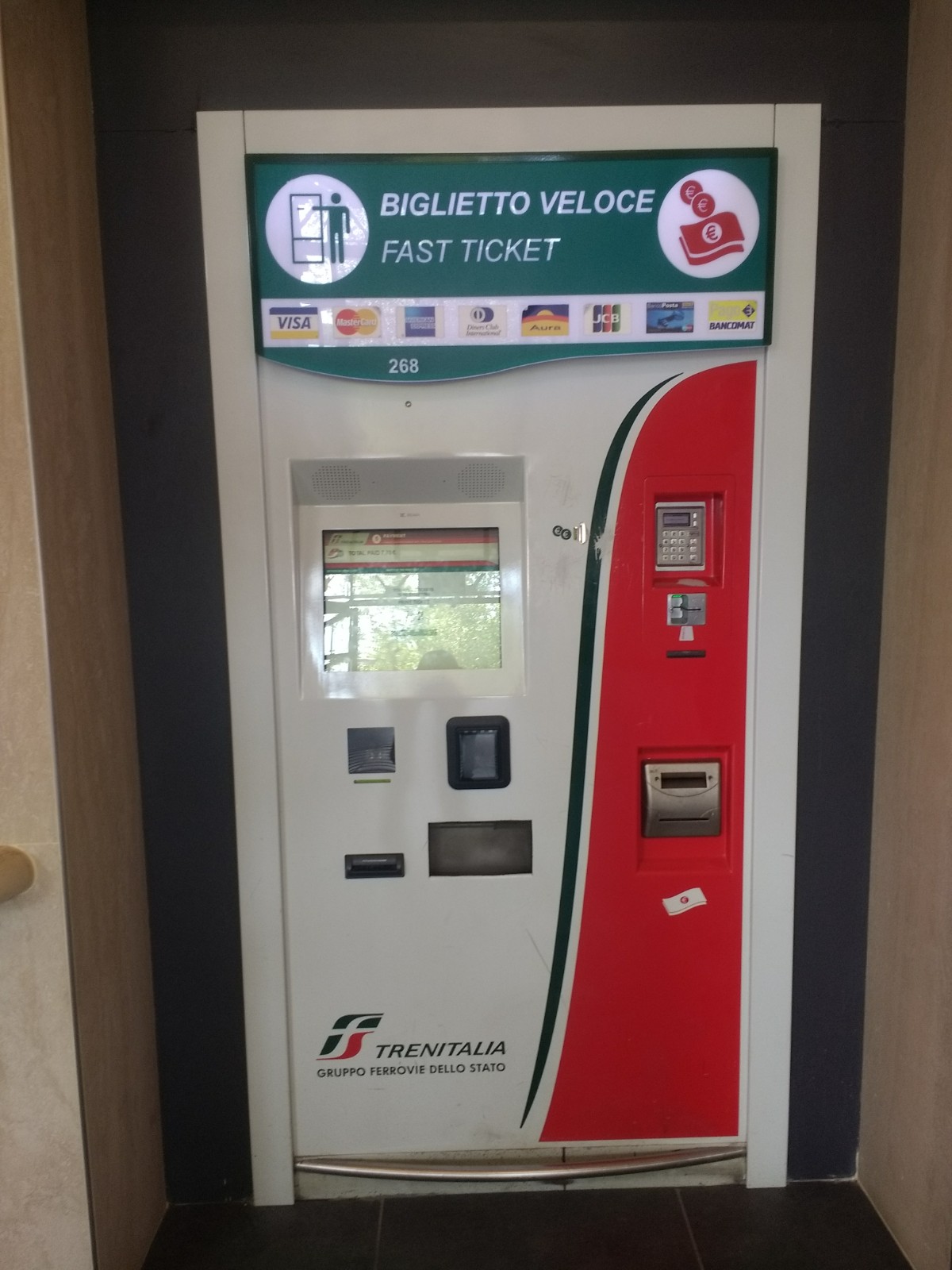 At the end of the day we headed back to the station. It’s usual in Italy to buy your ticket from a machine like the one above. If you know where you’re going, they’re easy to use, but not fast (no matter what’s written on the front). One problem is that Italian towns often have an Italian name that’s different to its English name, and unless you know the Italian name for your destination (and how to spell it) you won’t be going there.