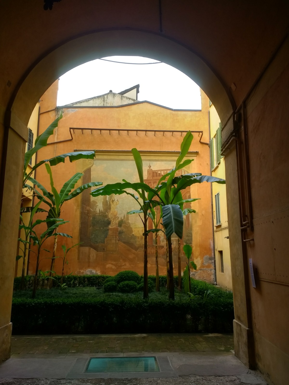 Large houses (palazzos) line the city streets here. Mostly divided into apartments, the residents share the space behind the building. These can only be accessed by passing through the building. Enclosed by high walls, each garden was an oasis of calm. Usually with a mass of vegetation, they are cool in the summer months (when it apparently gets hot).