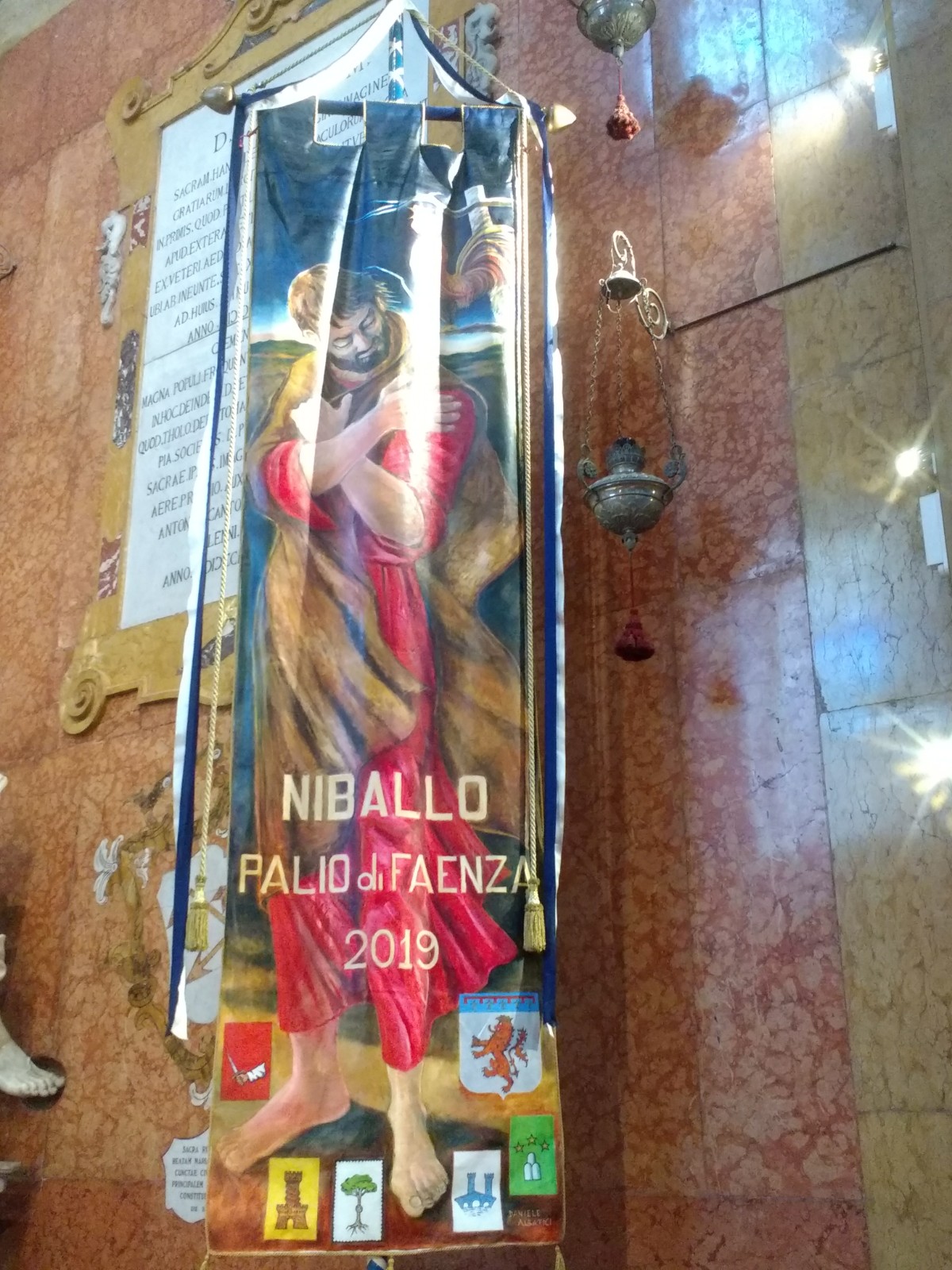 The church, it seems, supports the Palio. This banner was snapped inside the Cathedral.This Palio, held two weeks before the main event, is for the younger residents of the city. Faenza Cathedral