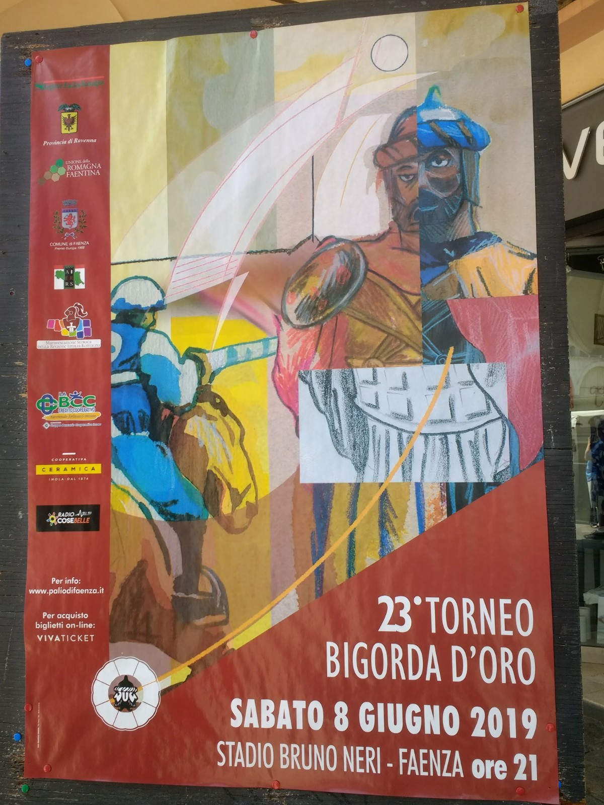 The Palio in Faenza is possibly a little less frenetic, and hopefully, less dangerous. Rather than being won in a race, the Palio is achieved by winning a jousting match (played in medieval dress). If you’re around, the date is 23 June this year.