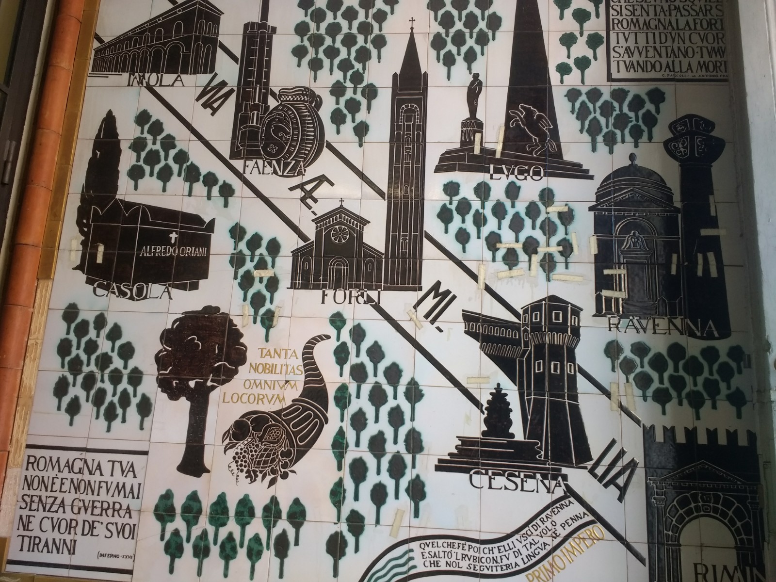 Many street signs and decorations in Faenza have been painted on tiles made in the local area.