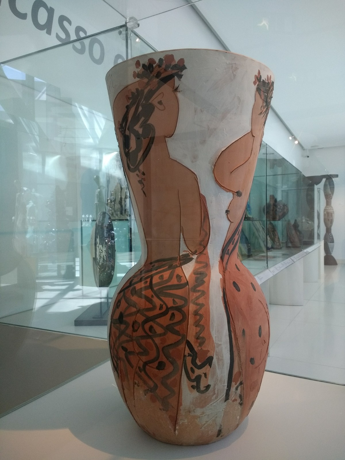 Majolica, or tin-glazed pottery, was perfected in Italy. These pots show the different stages of production. From the left, pot 1. The pot is formed of clay. 2. The pot has its first firing. 3. A glaze is applied.4. Decoration is applied without the glaze being fired first. Apparently, the unfired glaze absorbs the colours, rather like a fresco, making mistakes impossible to undo. 5. The pot is fired for a second time. Sometimes a second glaze is applied after the second firing. In the case of lustre ware a third firing is required.After the Second World War, in which the Museum of Ceramics in Faenza suffered much damage, Picasso, who produced ceramics as well as paintings, sent the ‘Dove of Peace’ to the museum.Another piece, ‘The Four Seasons’ , which Picasso gifted to the museum. I love the way Picasso used the shape of the vase to make the women’s bodies 3D.