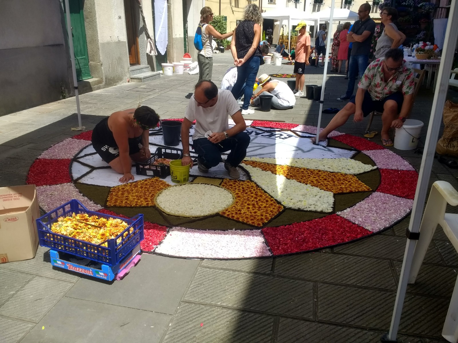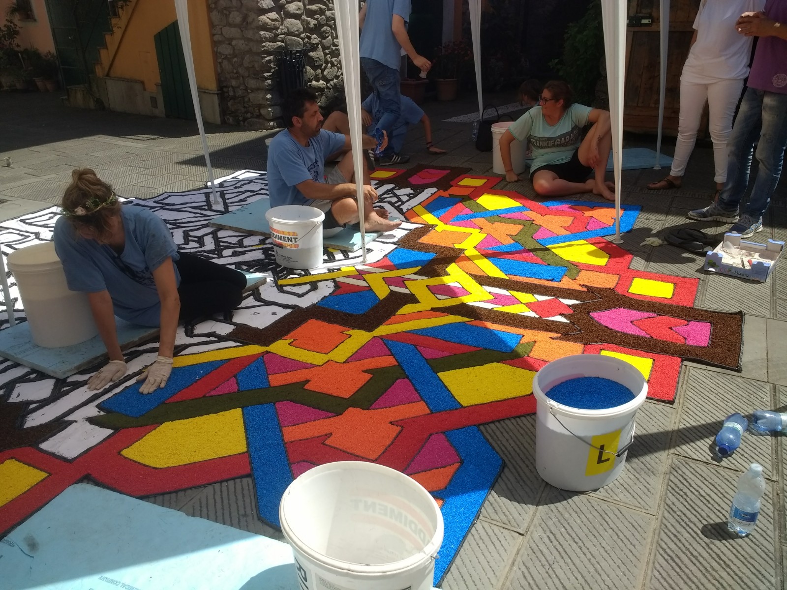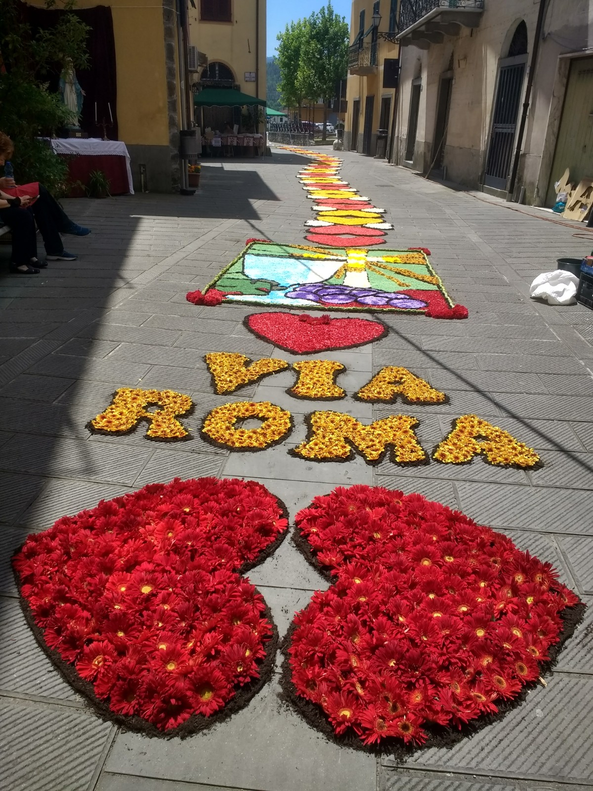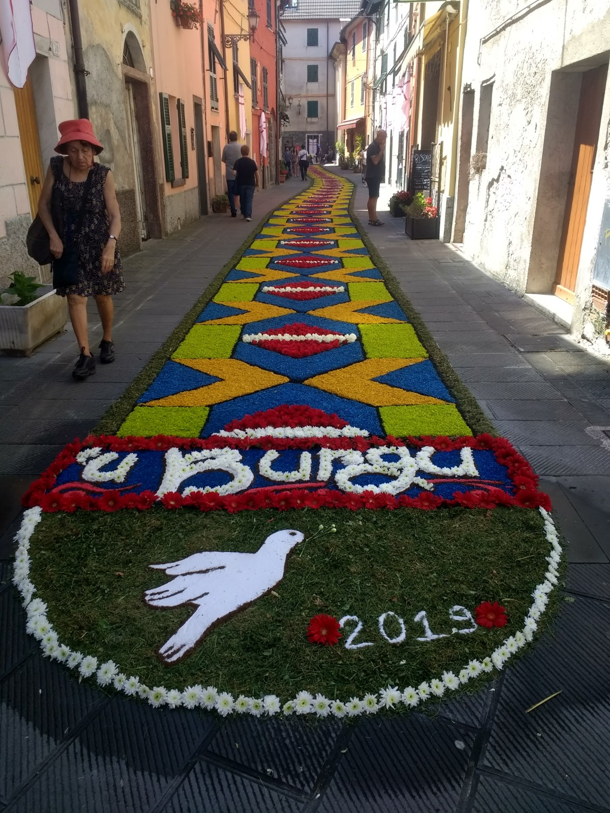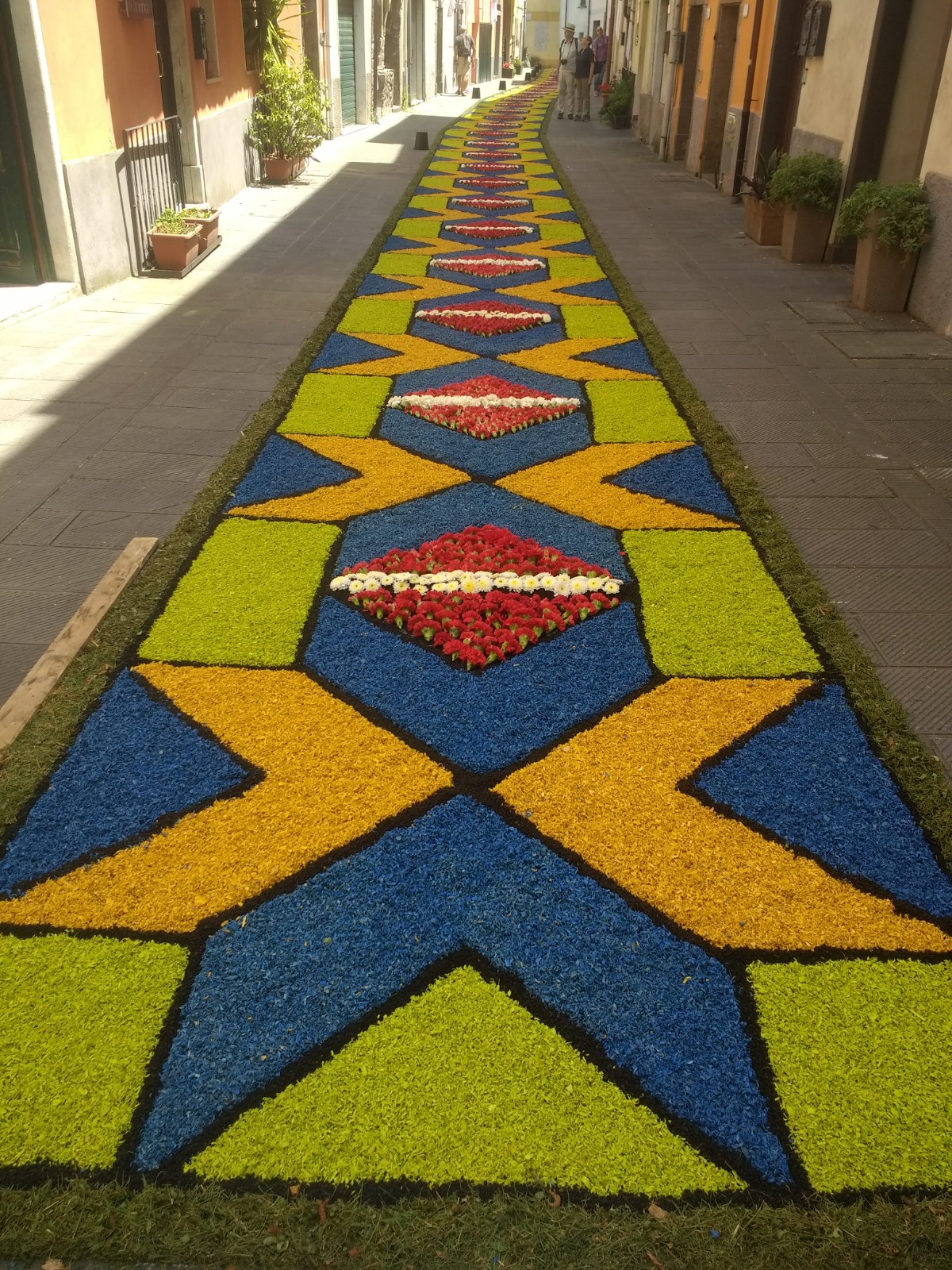 The village of Brugnato, a bus ride from La Spezia, and recognised as one of the most beautiful villages in Italy, takes part in this celebration and when we arrived mid-morning, design outlines were taking shape along the roads and alleyways.
