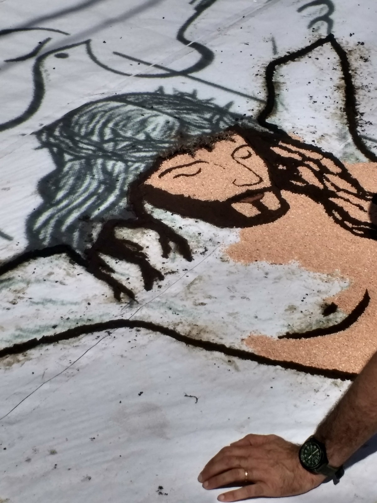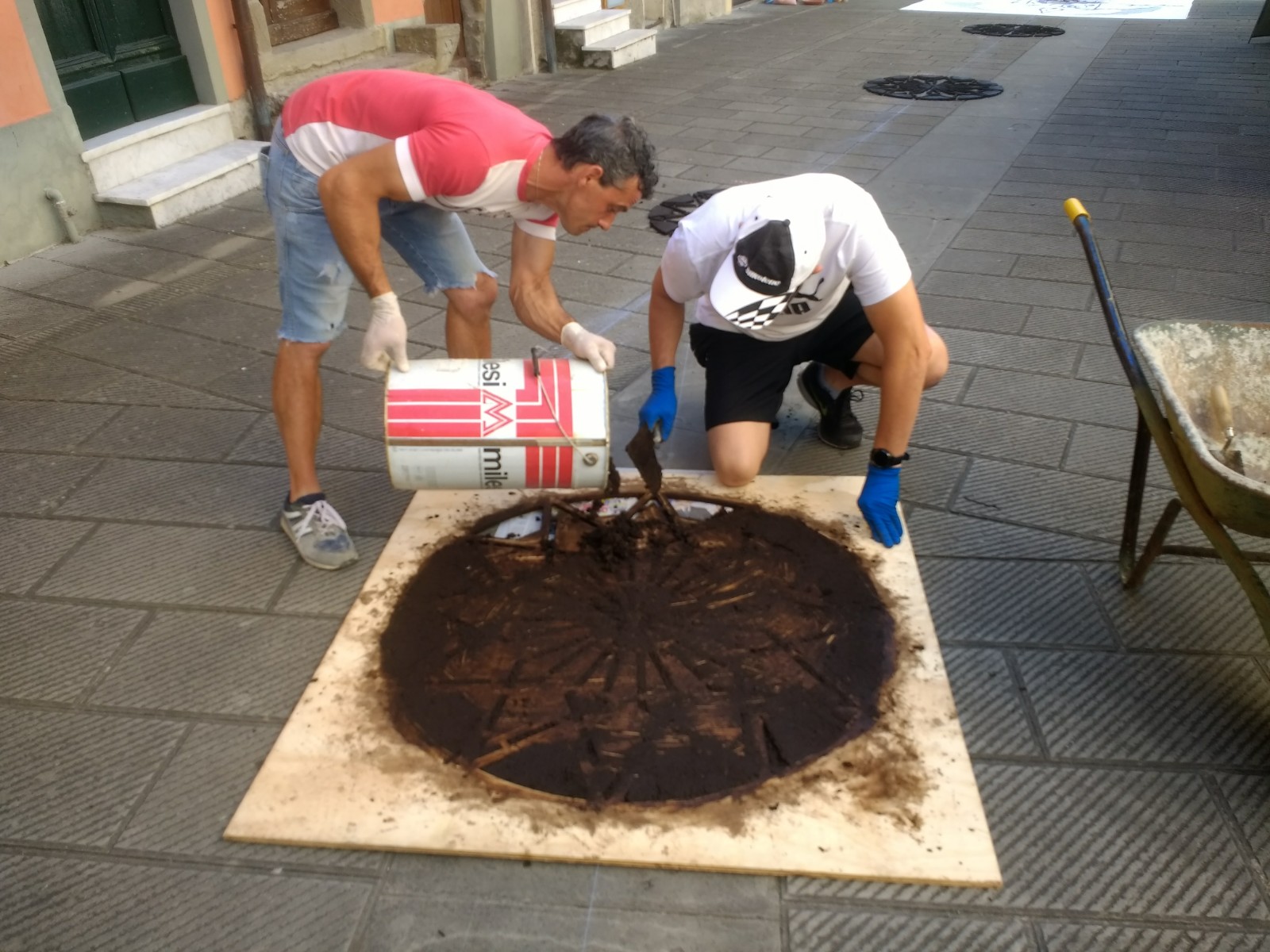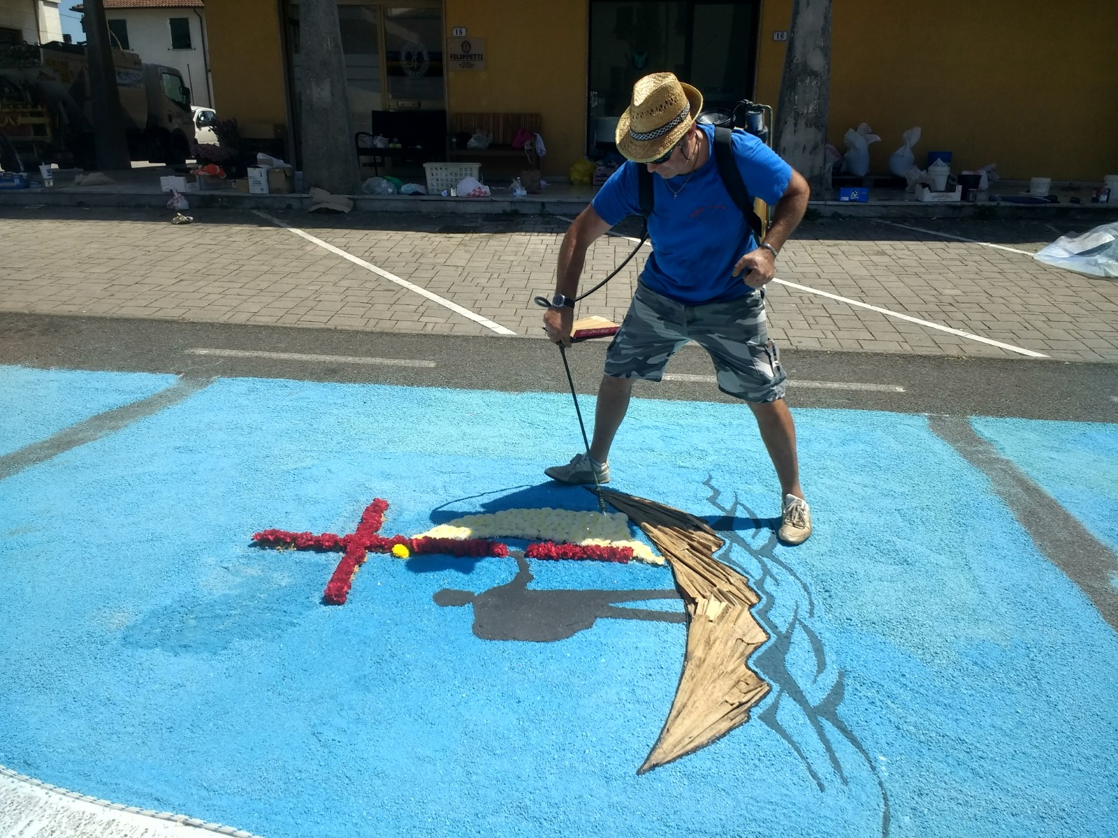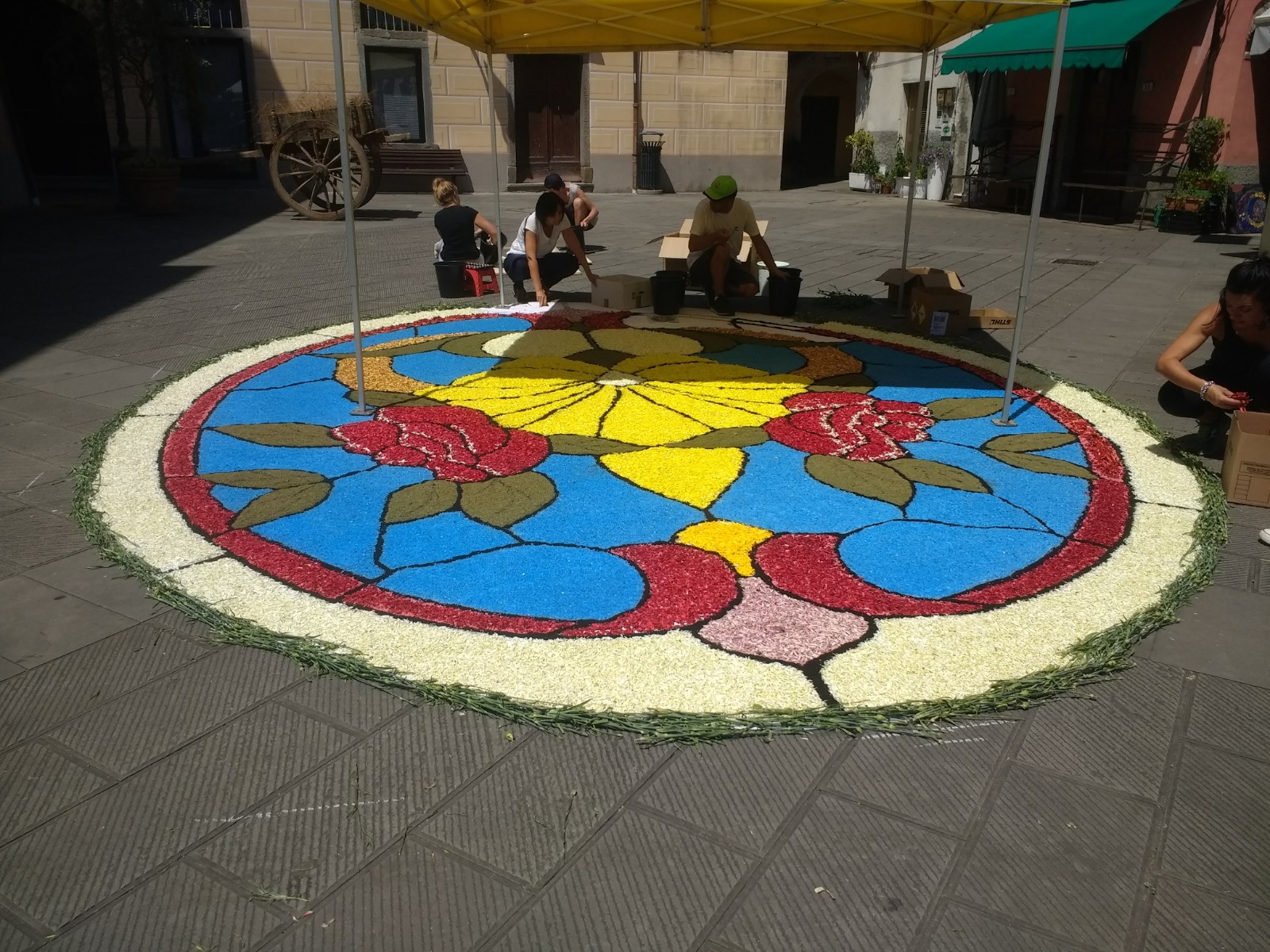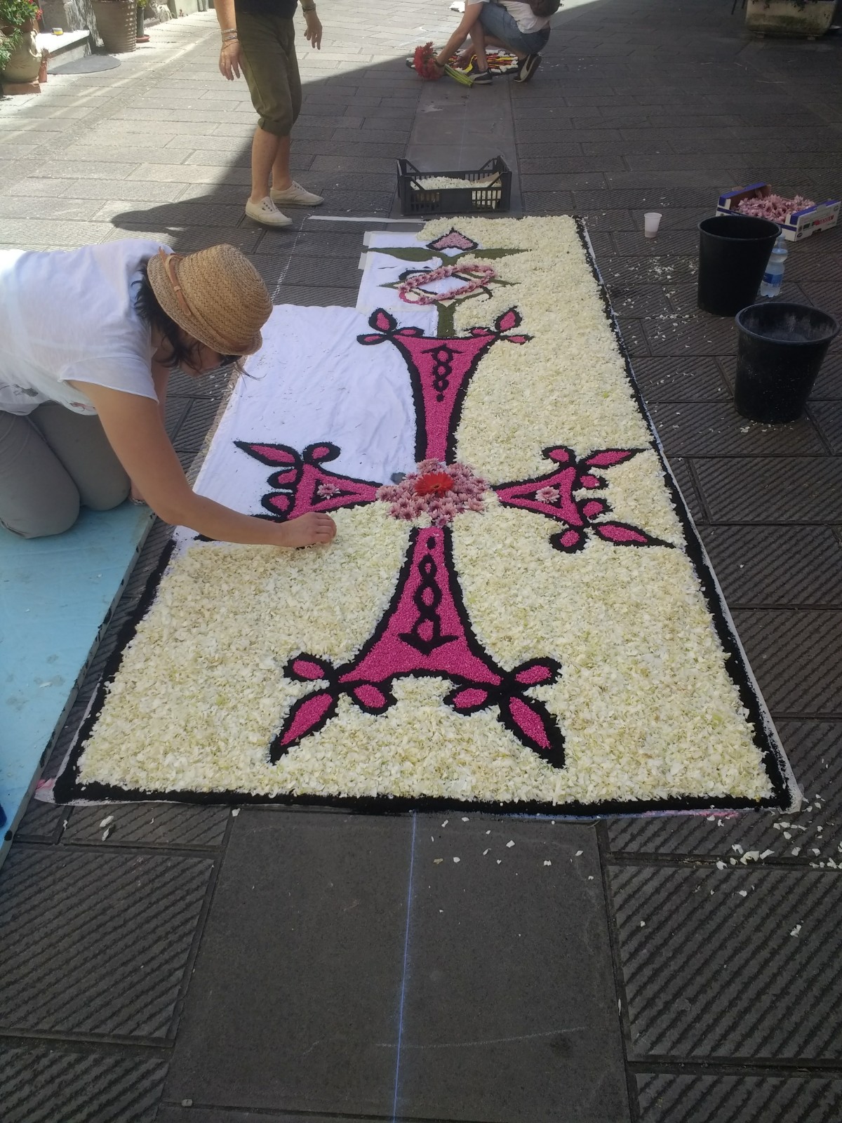 The village of Brugnato, a bus ride from La Spezia, and recognised as one of the most beautiful villages in Italy, takes part in this celebration and when we arrived mid-morning, design outlines were taking shape along the roads and alleyways.