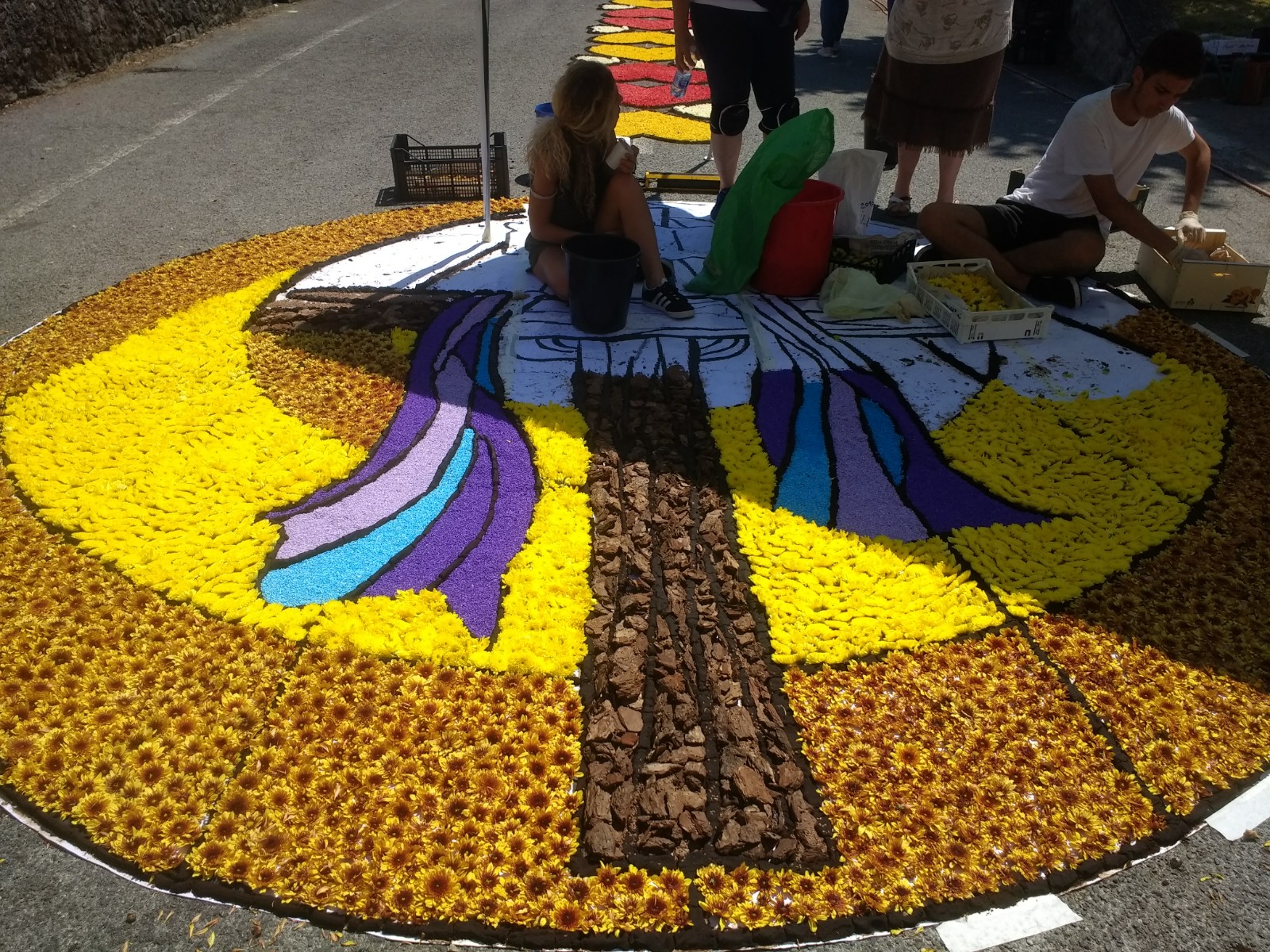 By mid-afternoon most designs were far from completion, but sadly we had to leave to catch one of the infrequent buses home. This evening would really be the optimum time to be in Brugnato, when all the work is done and there is a procession in the village.