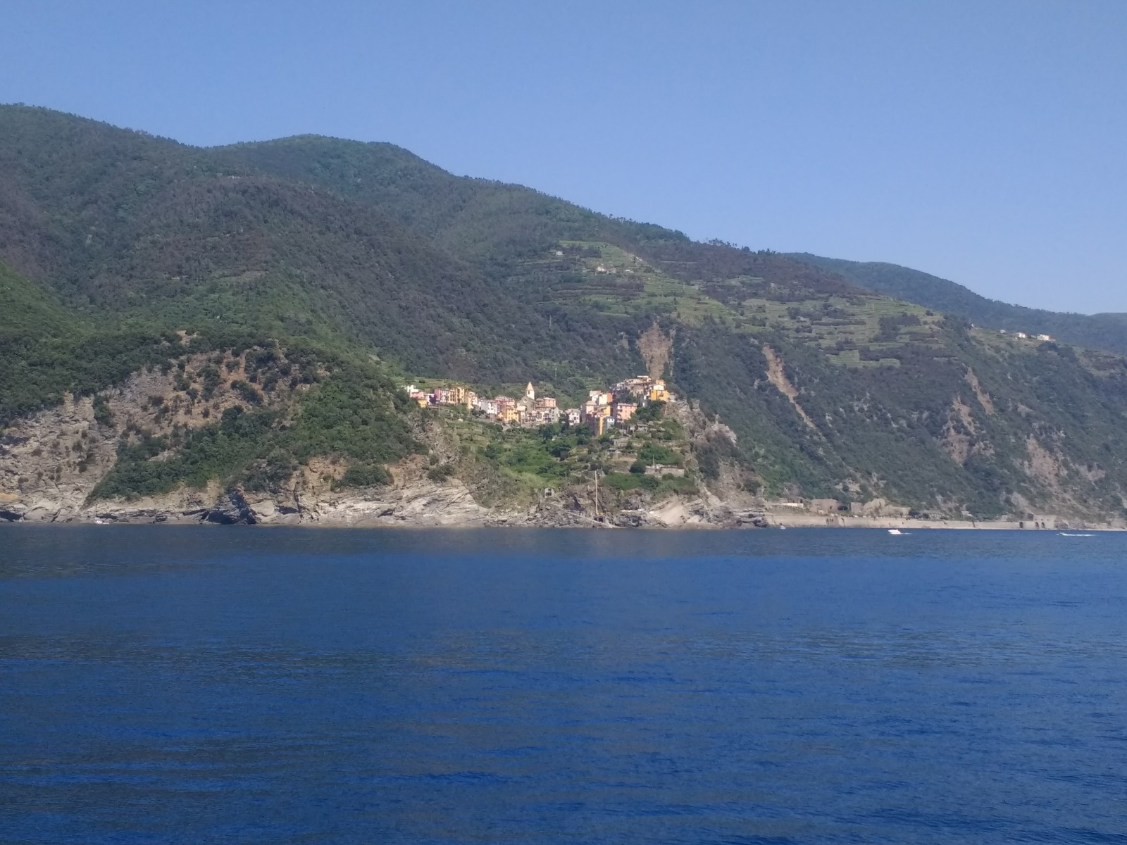 Longing for a sea breeze in the present heat, we took a boat ride yesterday on a hop on/off ferry from La Spezia along the Cinque Terre coast.